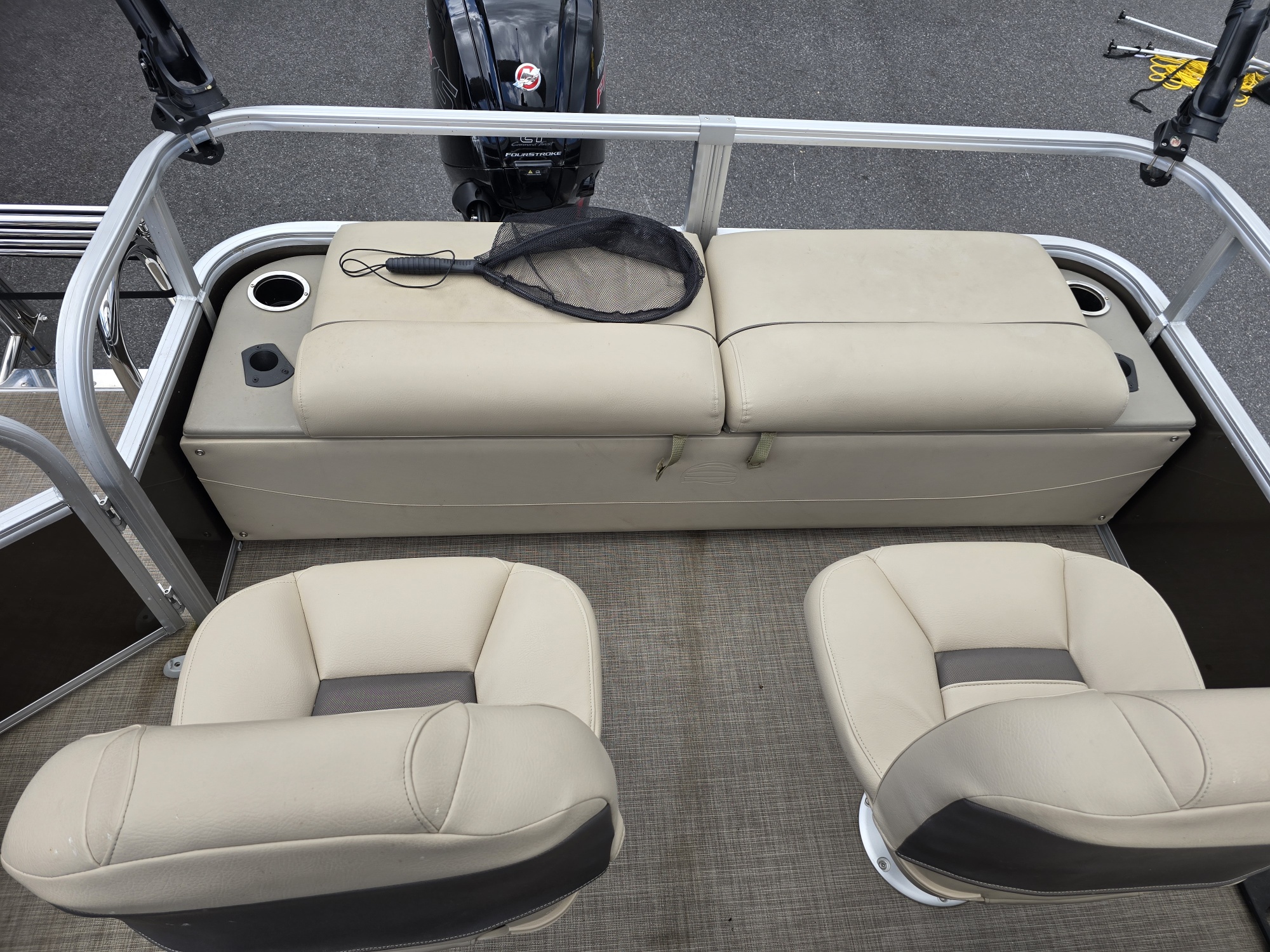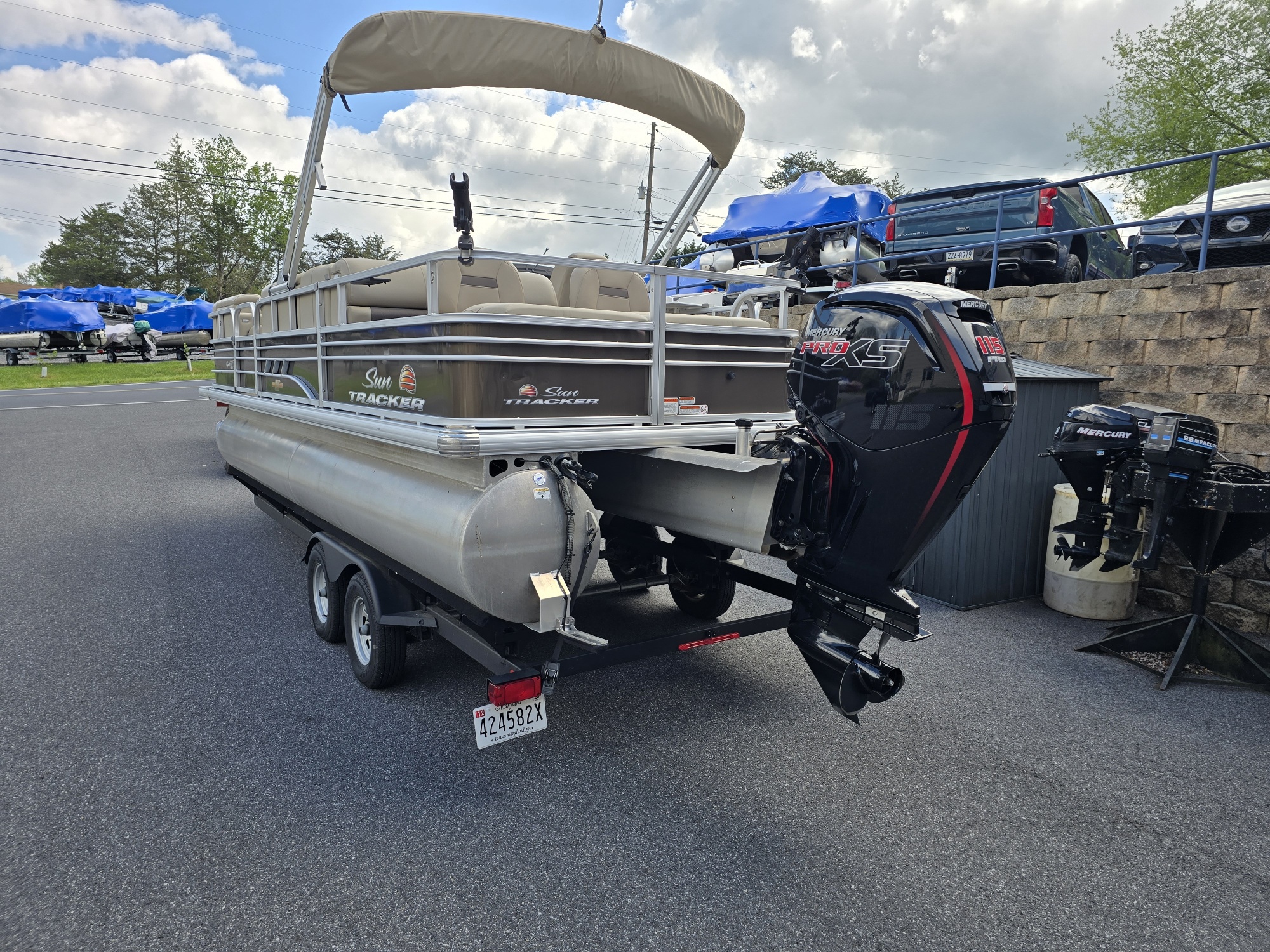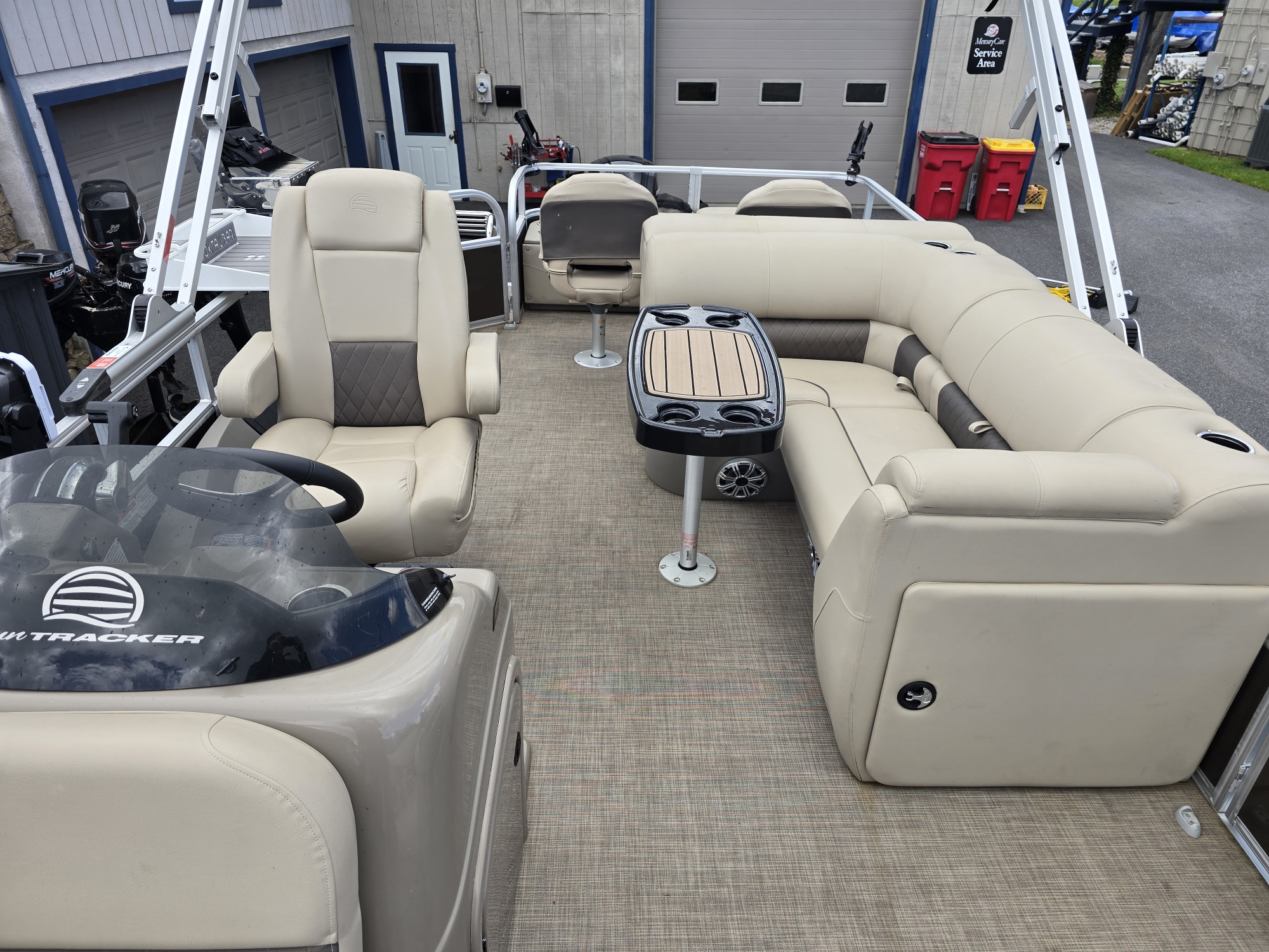 40TH ANNIVERSARY SERIES. FULLY EQUIPPED READY FOR THE WATER. 30.6 ENGINE RUN HOURS. FACTORY ENGINE WARRANTY THROUGH 10/20/2026. UPGRADED PRO XS SERIES ENGINE. POWER BIMINI TOP WITH INTERIOR LIGHT. MINN KOTA I PILOT WITH REMOTE, TWO BATTERIES AND QUICK RELEASE MOUNT. COMPLETE FACTOR OWNERS MANUALS. LOWRANCE ELITE FS7. TANDEM TRAILER WITH BRAKES, SPARE TIRE, TRAILER LOCKS AND TRANSOME SAVER. OUTER ARMOR TRACKER BOAT COVER. THREE BANK ON BOARD BATTERY CHARGER. TABLE WITH TWO FLOOR MOUNT LOCATIONS. DOCK TAIL BAR WITH MOUNT. KUMMA STAINLESS STEEL PROPANE GRILL WITH QUICK RAIL MOUNT AND STORAGE BAG. TWO CLAMP ON RAIL ROD HOLDERS. TWO ANCHORS WITH ROPE. FOUR BLACK BOAT FENDERS. DOCK ROPES. EIGHT BUCKLE LIFE JACKETS IN VARIOUS SIZES. FIRE EXTINGUISHER. CLEANING KIT. TWO MOVABLE SEAT CUP HOLDERS. GRILL COOKING UTENSILS. HO 12 VOLT INFLATOR. CAMP TRASH CAN. KICKER STERO BLUETOOTH WITH FOUR SPEAKERS..